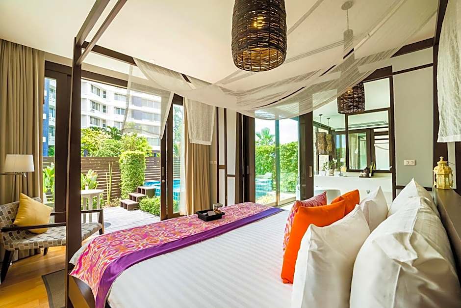 This family room's special feature is the private pool. The spacious family room provides air conditioning, soundproof walls, a terrace with garden views as well as a private bathroom featuring a bath. The unit offers 2 beds.