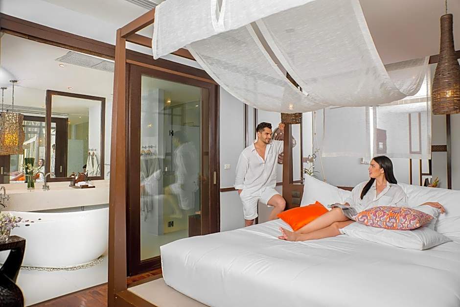 this room features a balcony with garden view and a private pool. It has a satellite TV and mini-bar. Free toiletries and a spa bathtub are included in an private bathroom.
